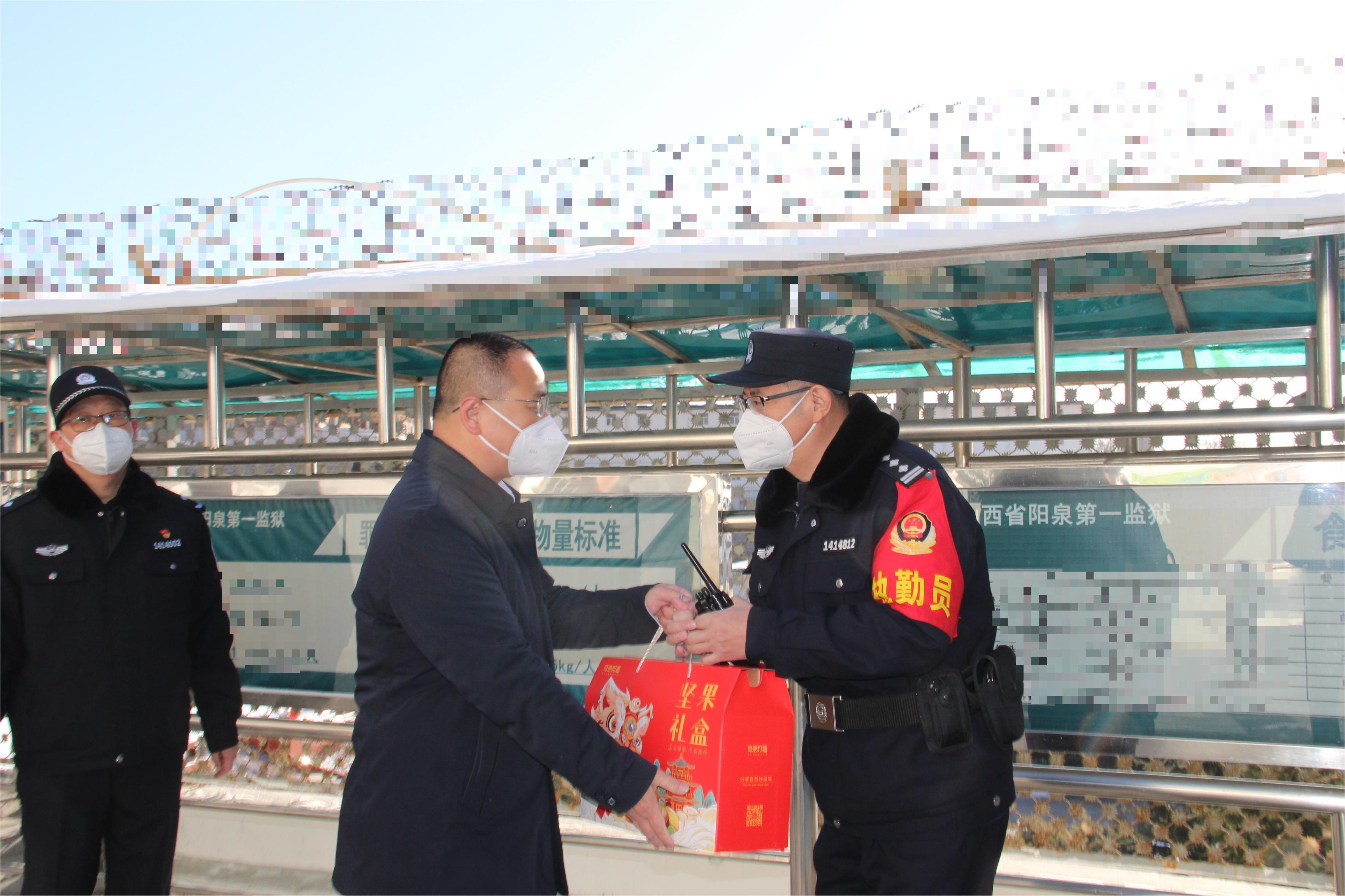 付利宝检察长带队深入阳泉一监和二监大门岗、二门岗、灶房、加工车间以及各监区进行实地检察,向监狱领导和值班民警询问安全防范具体事项,了解值班备勤、工具使用登记、罪犯日常管理等情况。同时,向当班民警表示亲切问候,并送上慰问品,表达新春祝福。