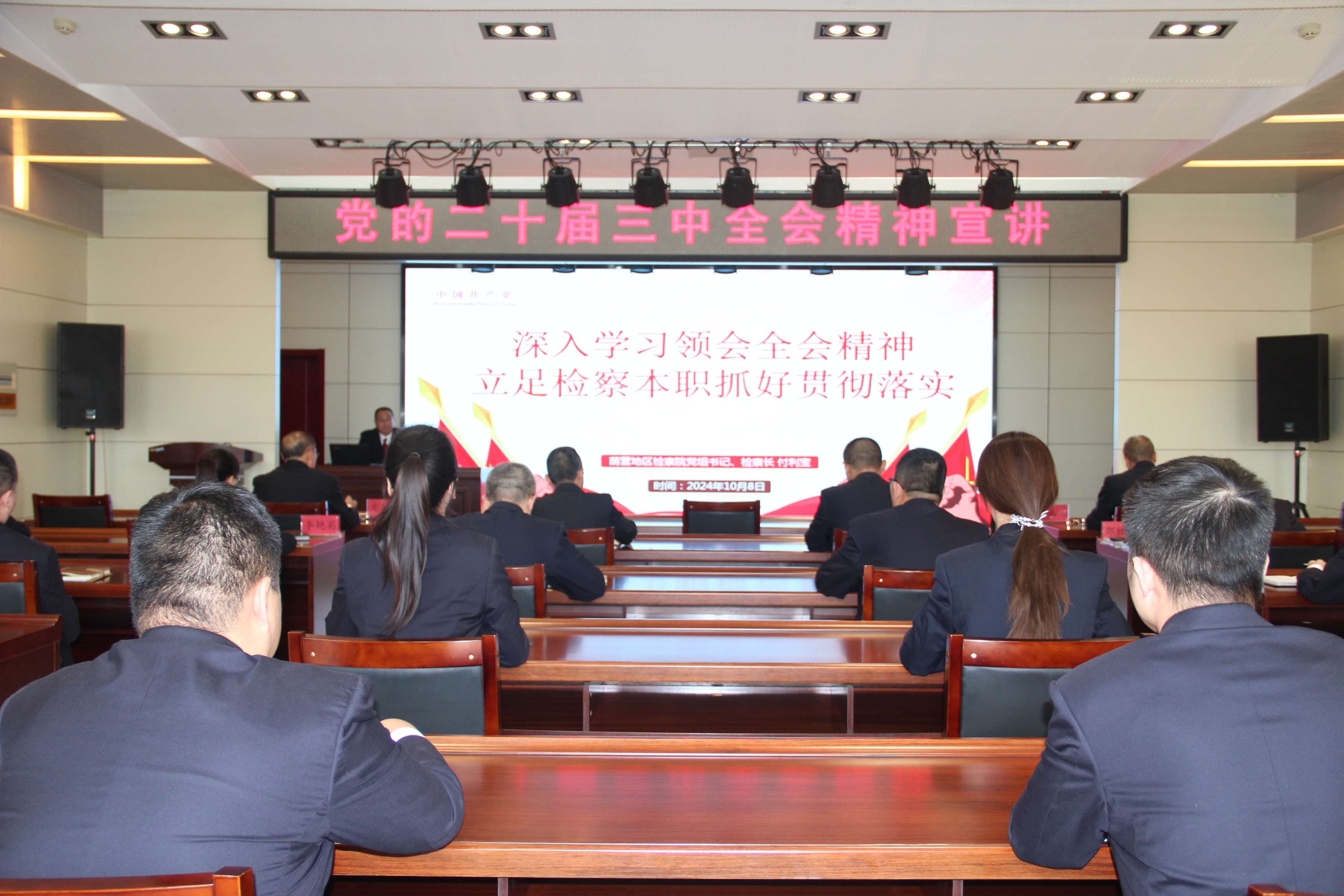 为深刻认识党的二十届三中全会重大意义,深入学习领会党的二十届三中全会精神和习近平总书记重要讲话精神,全面准确理解《决定》提出的进一步全面深化改革重大举措,10月8日,荫营地区检察院组织全体干警开展了学习贯彻党的二十届三中全会精神宣讲活动,党组书记、检察长付利宝作宣讲报告。