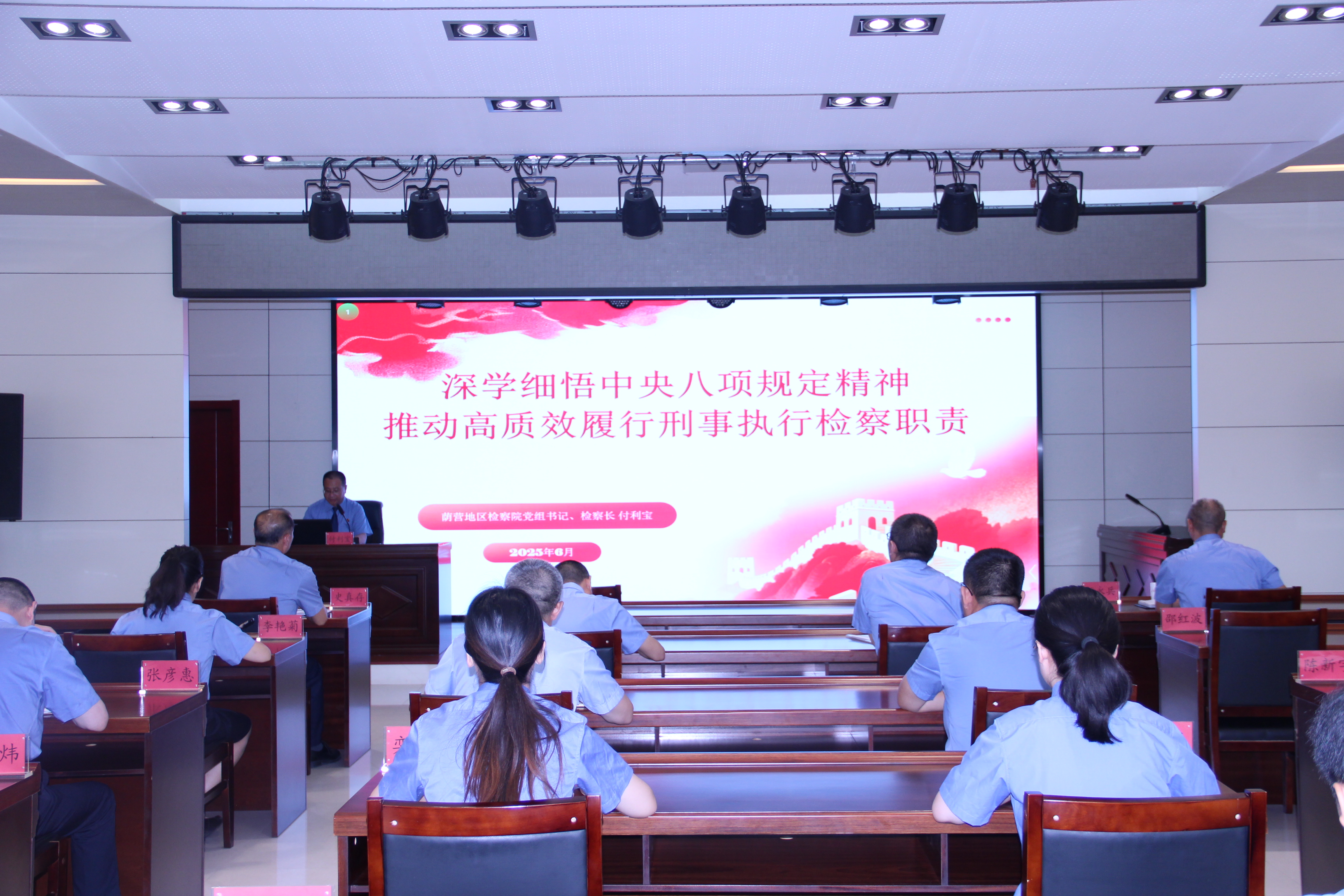 6月23日,山西省阳泉荫营地区人民检察院党组书记、检察长付利宝以“深学细悟中央八项规定精神 推动高质效履行刑事执行检察职责”为题,面向全院党员干警讲授专题党课。